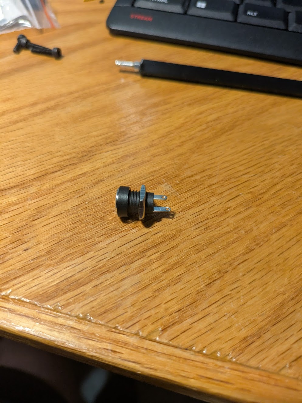 Screw a nut onto the DC barrel Jack. (it should come pre-installed, but may fall off in shipping. It’s important this is done before the wiring.