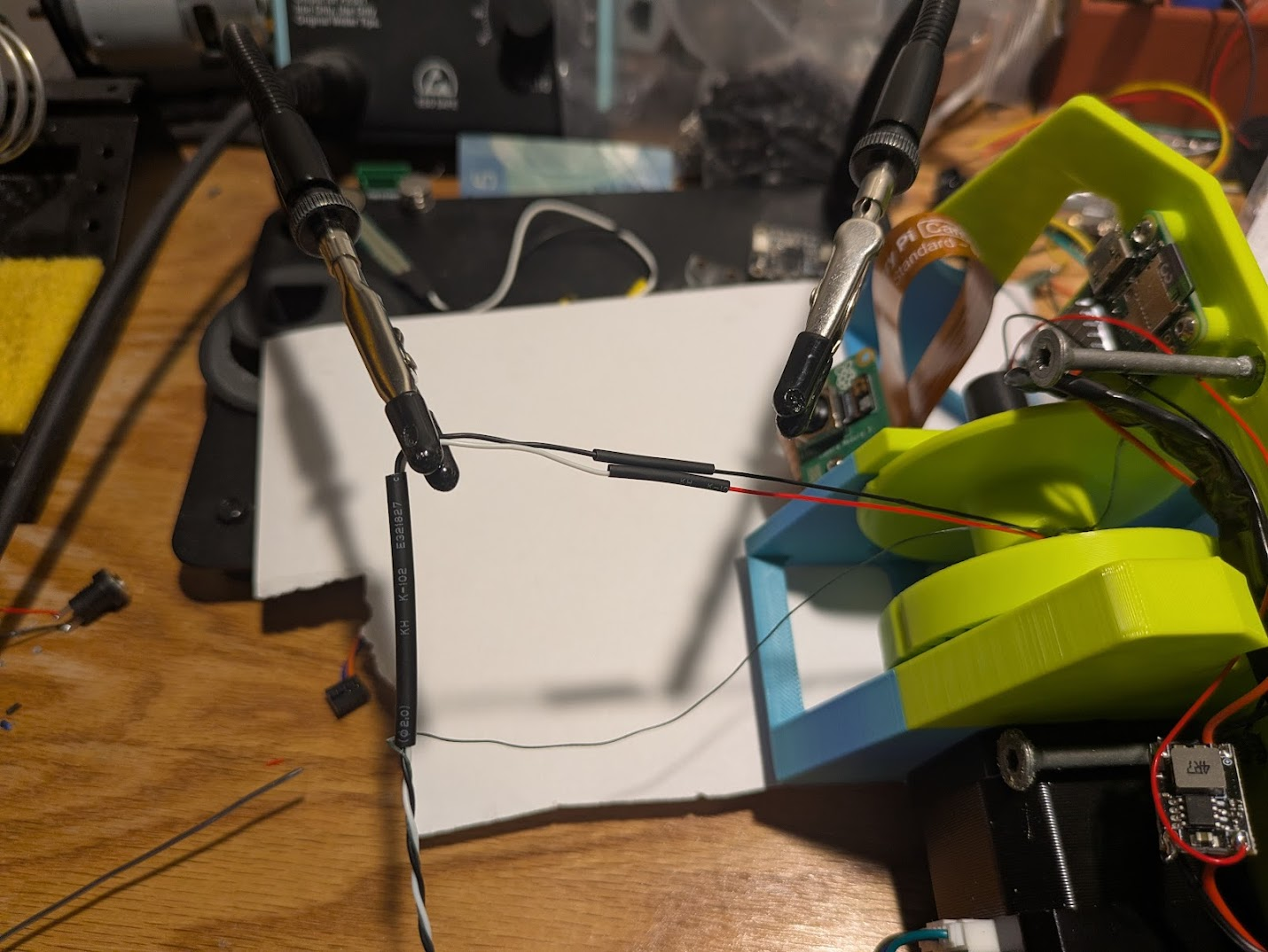 Splice a female JST 1.25 2P connector onto the wires with solder and heat shrink.