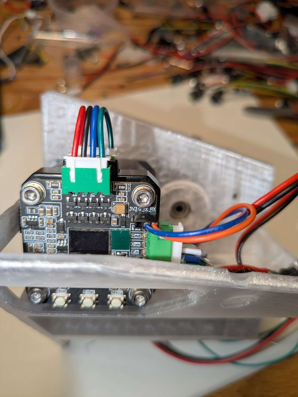 - Install the short 4-wire jumper of the MKS_SERVO42C between the board and stepper. There is only one way it will fit.