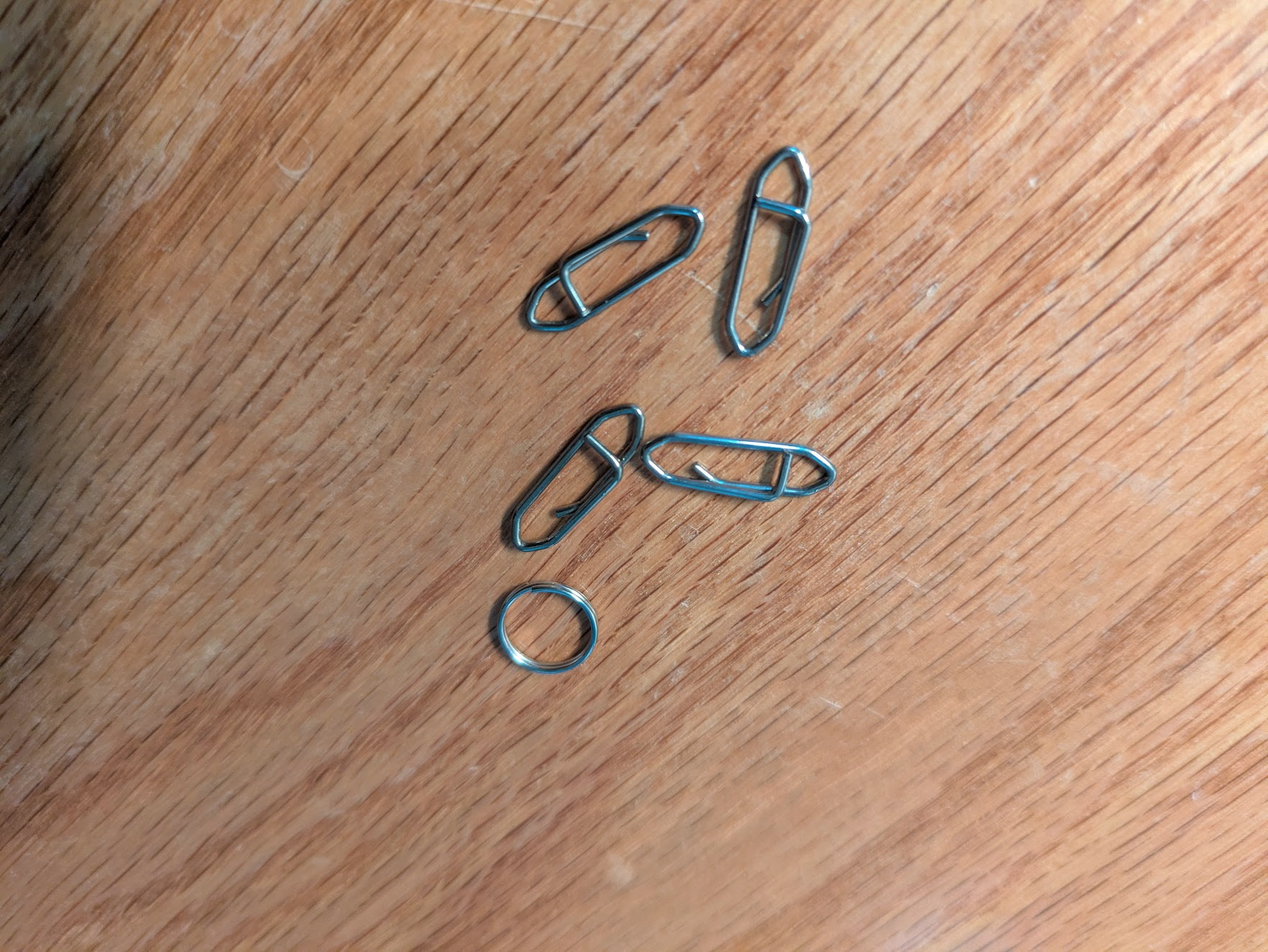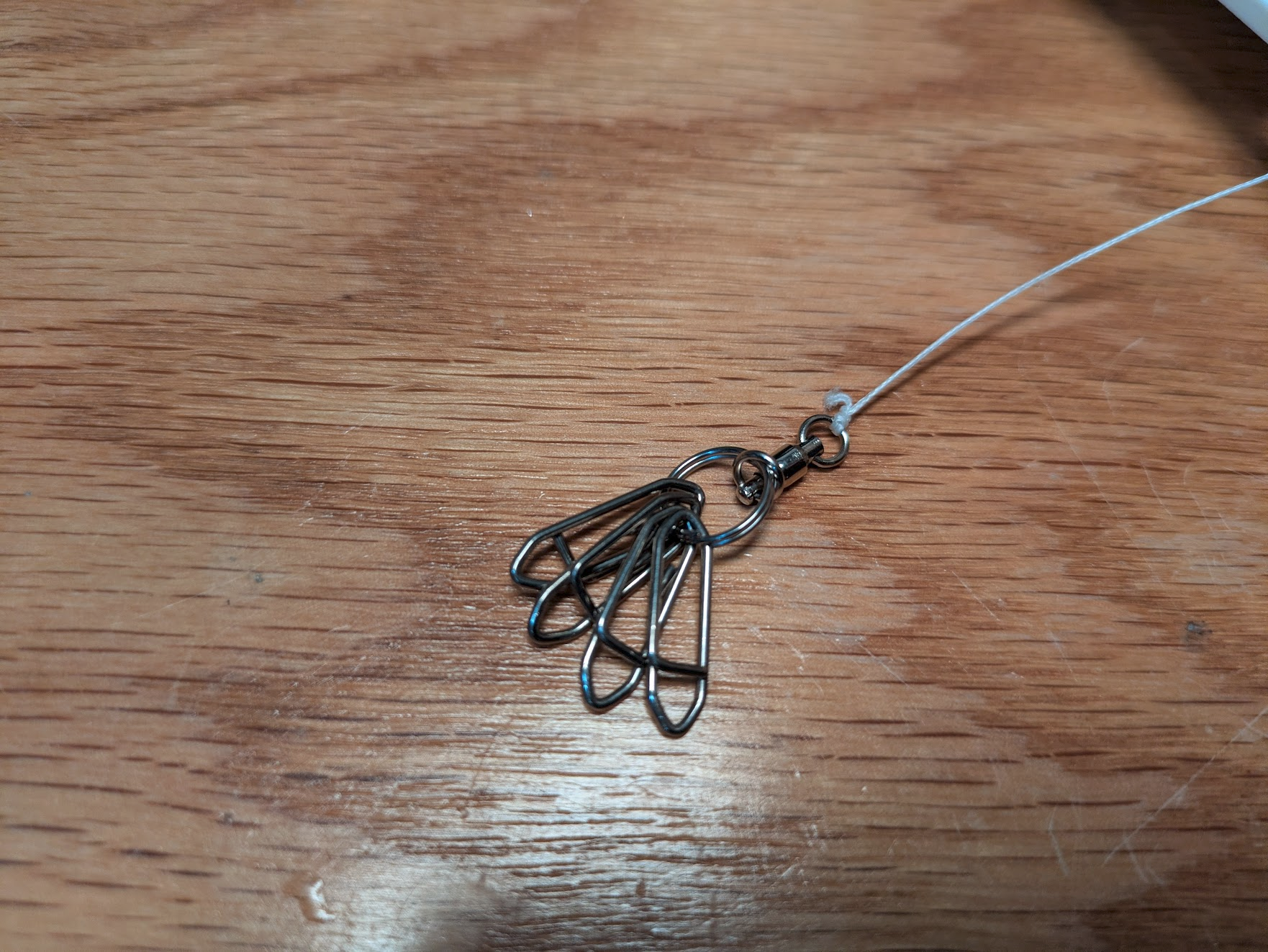 Attach four fishing speed clips to the keyring to accept the swivels from the four anchors during installation. These are just an optional time saver for ease of assembly and disassembly.