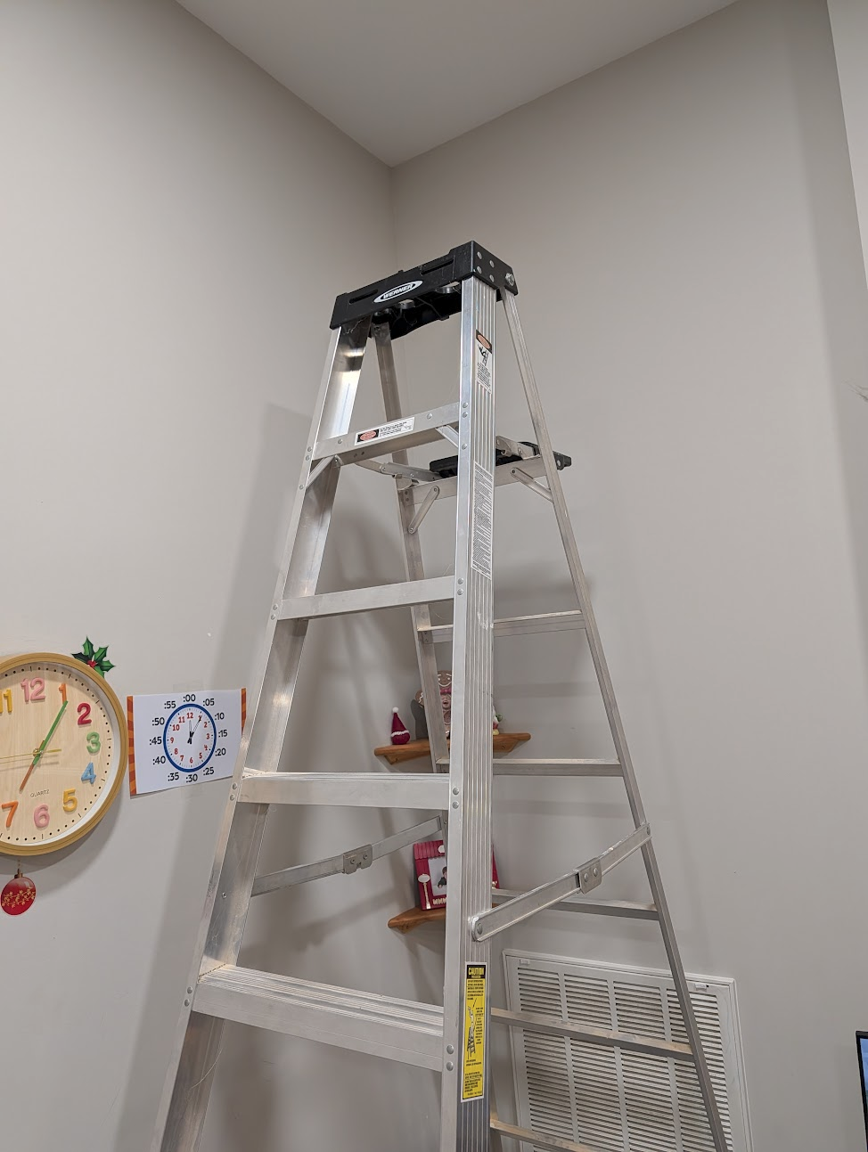 Safely place your ladder in the corner of the room so you can reach the ceiling.